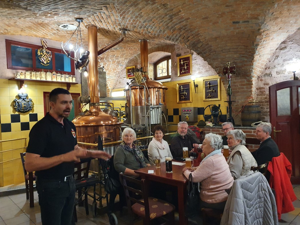 Kaiser Karl IV. aus dem Hause Luxemburg, war als Kind hier einige Monate mit seiner Mutter verbannt. Er löste die von seinem Vater verpfändete königliche Veste wieder aus und erhob den Ort Elbogen nach Egerer Recht zur Stadt. Bekannt ist auch das Freilichttheater an der Eger. Goethe feierte 1813 hier seinen 74. Geburtstag. Die Reisegruppe genoss dagegen das Mittagessen im historischen Lokal Heiliger Florian (Svatý Florián) mit angeschlossener Familienbrauerei.