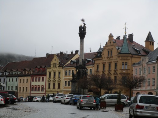 Über Spitzkehren mit fast alpinem Charakter, brachte der Bus die Reisegruppe nach Gottesgab. Die alte Bergstadt ist ein bedeutendes Wintersportzentrum im Erzgebirge und gilt als die höchstgelegene Stadt in der Tschechischen Republik. Die Stadt liegt in Westböhmen auf einer Hochebene auf dem Erzgebirgskamm in einer Höhe von 1028 m. Nördlich des Ortes verläuft die Grenze zu Sachsen. Östlich erhebt sich der Keilberg mit 1243 m, die höchste Erhebung im Erzgebirge und auf sächsischer Seite der 1225 hohe Fichtelberg.