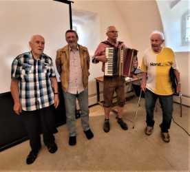 wieder Gemeinschaft, endlich wieder gemeinsam musizieren, singen und Humor genießen.